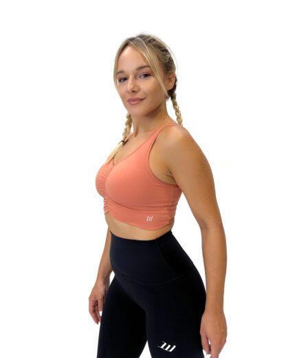 Aθλητικό bra με σουρα στο στήθος , λειτουργικό και στεγνώνει γρήγορα, σχεδιασμένο να διατηρεί δροσερό το σωμα στη διάρκεια της άσκησης. Προσθαφαιρούμενη γέμιση – ενισχύση στο κάθε στήθος.
