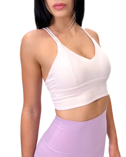 Αθλητικό μπουστάκι από λειτουργικό ύφασμα που στεγνώνει γρήγορα, σχεδιασμένο να διατηρεί το σώμα στεγνό και δροσερό στη διάρκεια της άσκησης.  Θήκες με επένδυση και αφαιρούμενα μαξιλαράκια που σμιλεύουν το στήθος. Φαρδύ λάστιχο στο τελείωμα. Υψηλή στήριξη, κατάλληλη για υψηλής έντασης άσκηση.